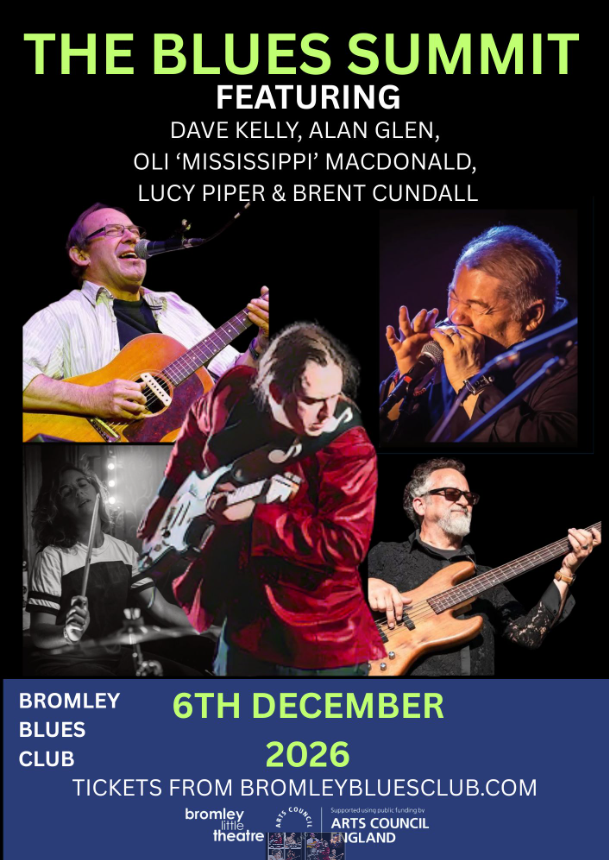 Bromley Blues Club are delighted to announce the line-up for this year’s blues summit. We’re bringing two legends of British Blues to the stage, Dave Kelly (John Dummer Band, The Blues Band) and a pupil of Mississippi Fred McDowell, as well as Alan Glen (The Yardbirds, Nine Below Zero). They’ll be backed by our house band, 3 x UK Blues Award Winner and Take Me To The River All Star Oli Mississippi MacDonald, along with Lucy Piper (Drums) and Brent Cundall (Bass).