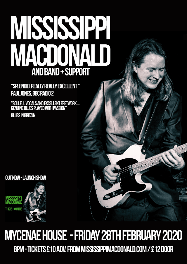 Mississippi MacDonald is a 3 times British Blues Awards nominee, from London, England. He has been playing since he was 11 years old and has travelled extensively on the US blues trail, meeting, amongst others, Pinetop Perkins, Willie Big Eyes Smith, Otis Clay and BB King.